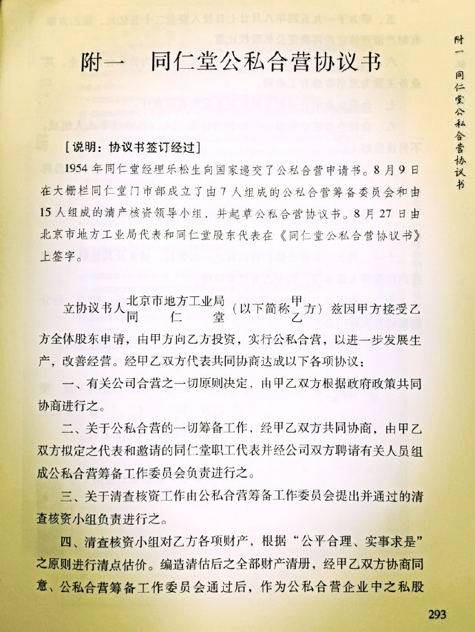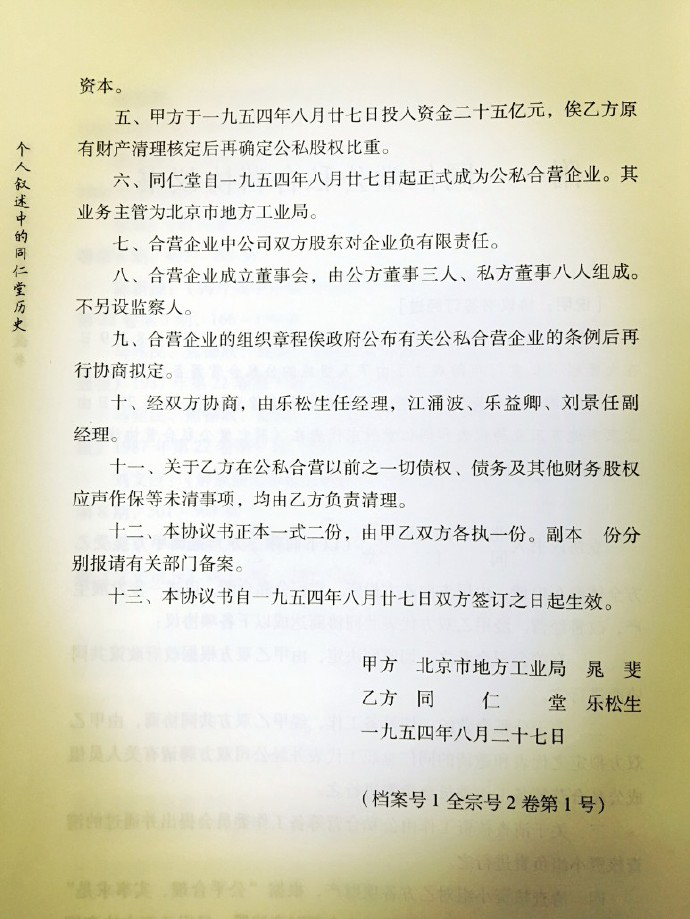 有素材顯示,當(dāng)時(shí)公私合營(yíng)過(guò)程中,國(guó)有資本投入25億(相當(dāng)于1955年幣制改革后的25萬(wàn)),后經(jīng)過(guò)資產(chǎn)清查,同仁堂的私人資本核定的數(shù)字是123億(相當(dāng)于1955年幣制改革后的123萬(wàn)),國(guó)有資本為小股東,樂氏家族第十三代掌門人樂松生為公司的實(shí)際控制人。