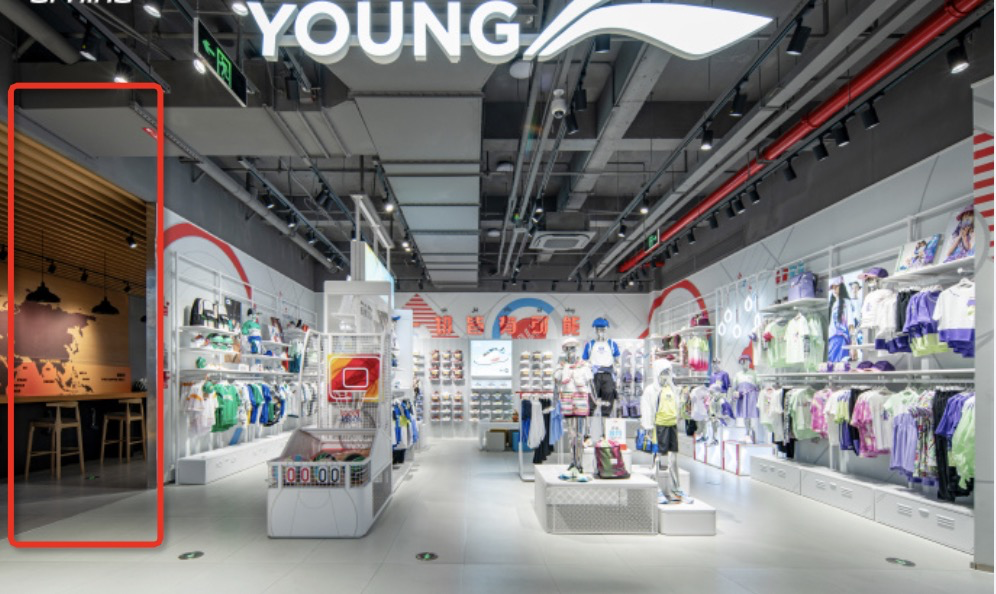 李寧廈門中華城旗艦店,紅框內(nèi)或為寧咖啡區(qū)域:圖片來源于李寧官方微博