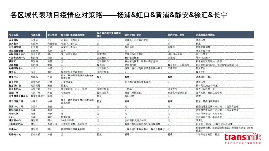 全斯美德對上海重點區(qū)域的數(shù)十家代表性商業(yè)、商辦類項目業(yè)主做了調(diào)研,除了市屬國企之外,大部分企業(yè)對于租金減免這一提案,表示觀望甚至否定。