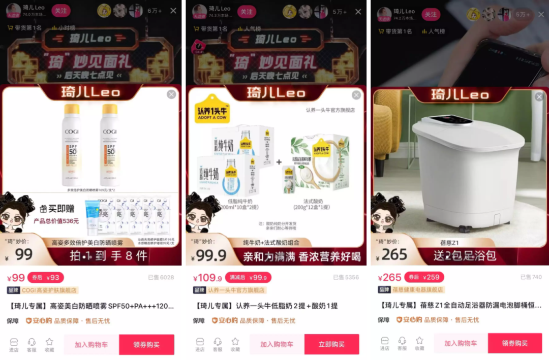 琦兒直播間產(chǎn)品 來(lái)源 / 抖音直播截圖