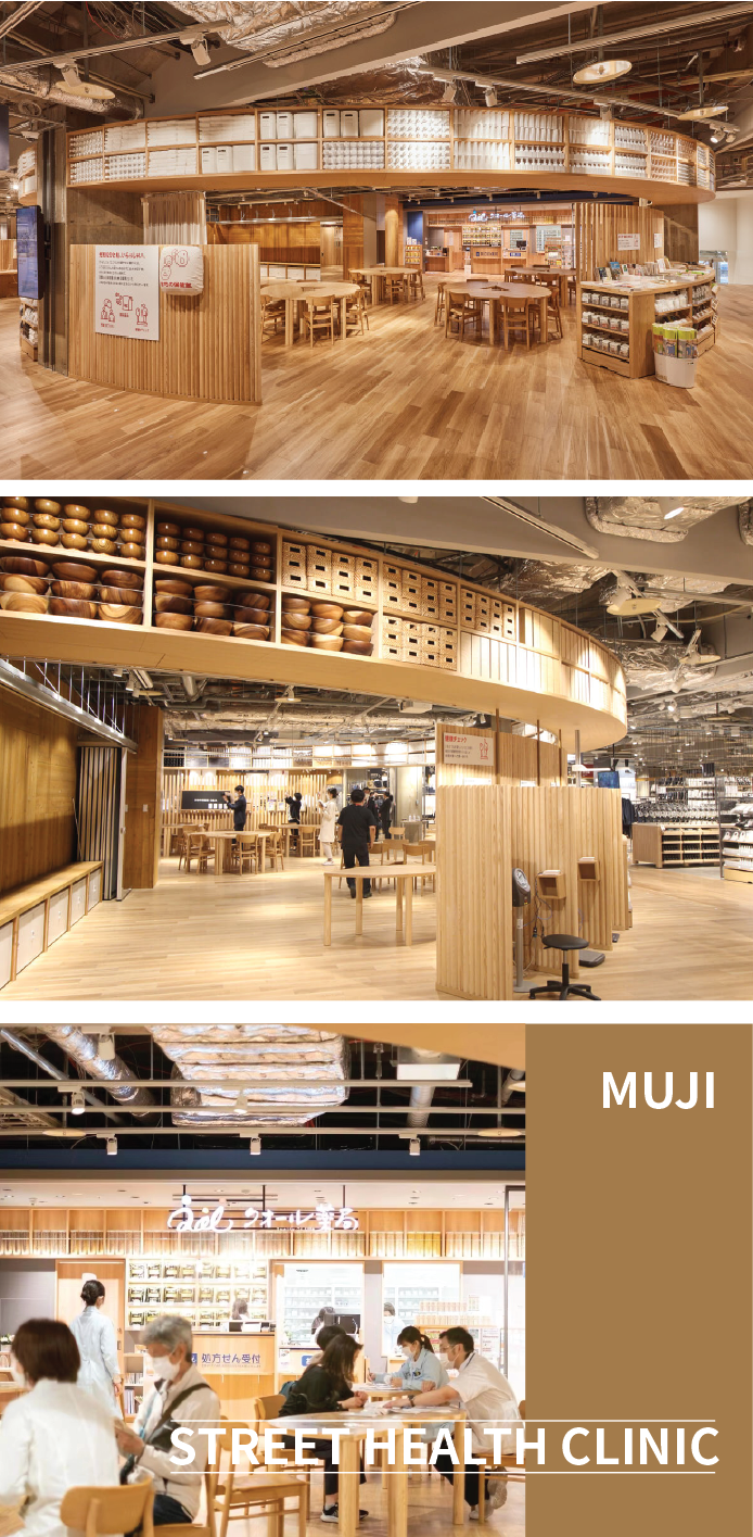 另外,每日安排理學(xué)療法師、保健師、營養(yǎng)管理師等不同專家駐店,顧客無需預(yù)約,即可隨時到店咨詢健康相關(guān)問題。此外,邀請連鎖藥店QOL入駐,提供處方簽配藥服務(wù)。該場地還可用于舉辦各種健康主題的活動。通過這樣的方式,無印良品希望將保健室打造成維護居民身心健康的區(qū)域社交中心。