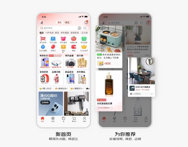 改版后的京東APP首頁(yè),縱向空間更緊湊,橫向空間同步拓展,以用戶的興趣出發(fā),帶來(lái)全新沉浸式選購(gòu)體驗(yàn),實(shí)現(xiàn)一鍵邊逛邊買。