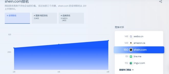 進(jìn)入2022年,SHEIN官網(wǎng)流量仍然不減。根據(jù)Similarweb最新數(shù)據(jù)分析,shein.com全球排名150,僅次于亞馬遜官網(wǎng)。而在美國(guó)時(shí)裝服飾品類網(wǎng)站中,shein.com排名第二。