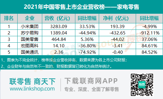 2021年中國零售上市企業(yè)營收排行榜|聯(lián)商數(shù)據(jù)