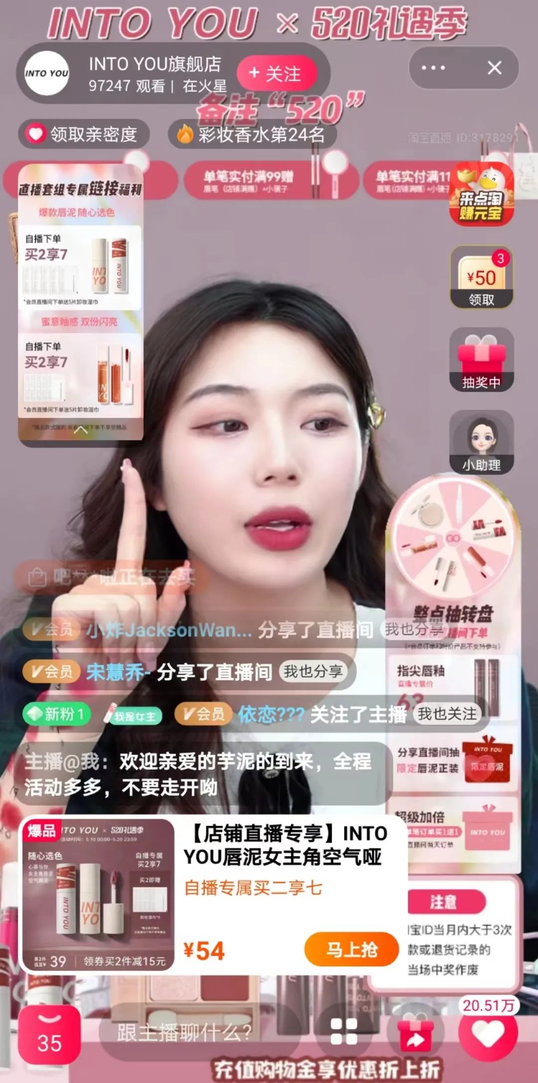 INTO YOU相關(guān)負責(zé)人表示,于品牌而言,達人直播間更像是一個線上流量池的入口,而自播則是經(jīng)營品牌的重要方式之一,“它的功能不僅是帶貨這么簡單,品牌可以借助直播間話術(shù)、氛圍渲染、貨品搭配等手段,吸引從各個渠道來到品牌自播間的消費者,并將他們發(fā)展為品牌粉絲”。