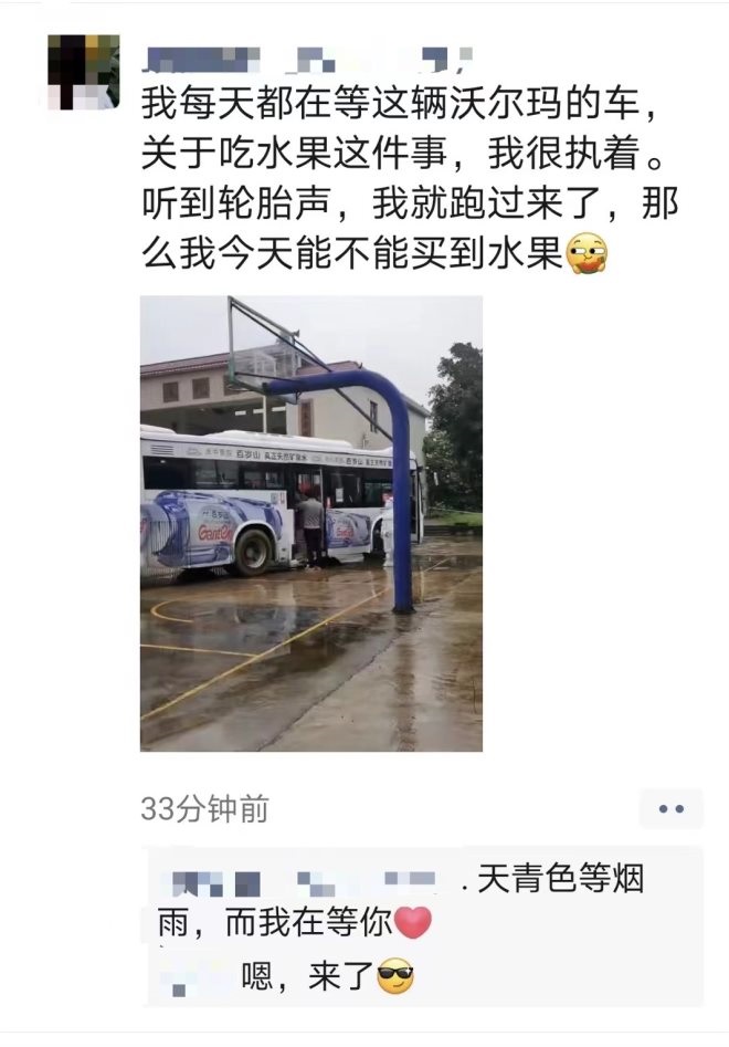 岑屋垌村一位村民告訴沃爾瑪員工:“我們村被封控以來都沒能吃上肉和水果,你們來得太及時(shí)了。”