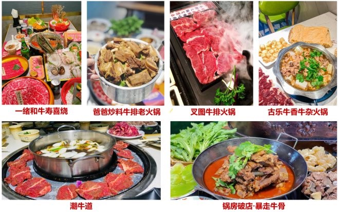 此外,主打涮烤一體的潮牛道、日式火鍋一緒和牛壽喜燒、牛排火鍋爸爸炒料和叉圖、牛雜火鍋古樂牛香、牛骨火鍋鍋房破店·暴走牛骨,也都榜上有名。