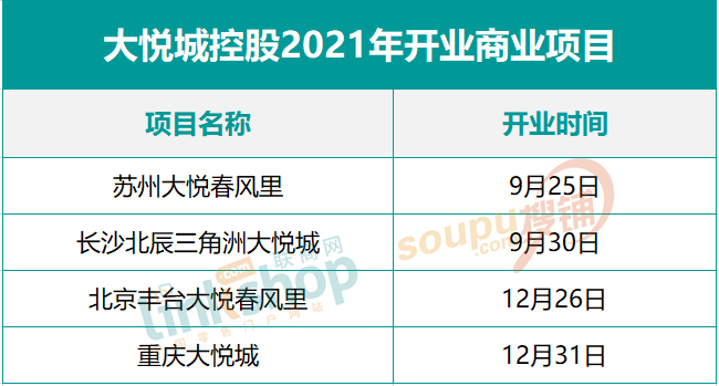 2021年,大悅城控股新開了4個商業(yè)項目,分別是蘇州大悅城春風里、長沙北辰三角洲大悅城、北京豐臺大悅春風里、重慶大悅城。