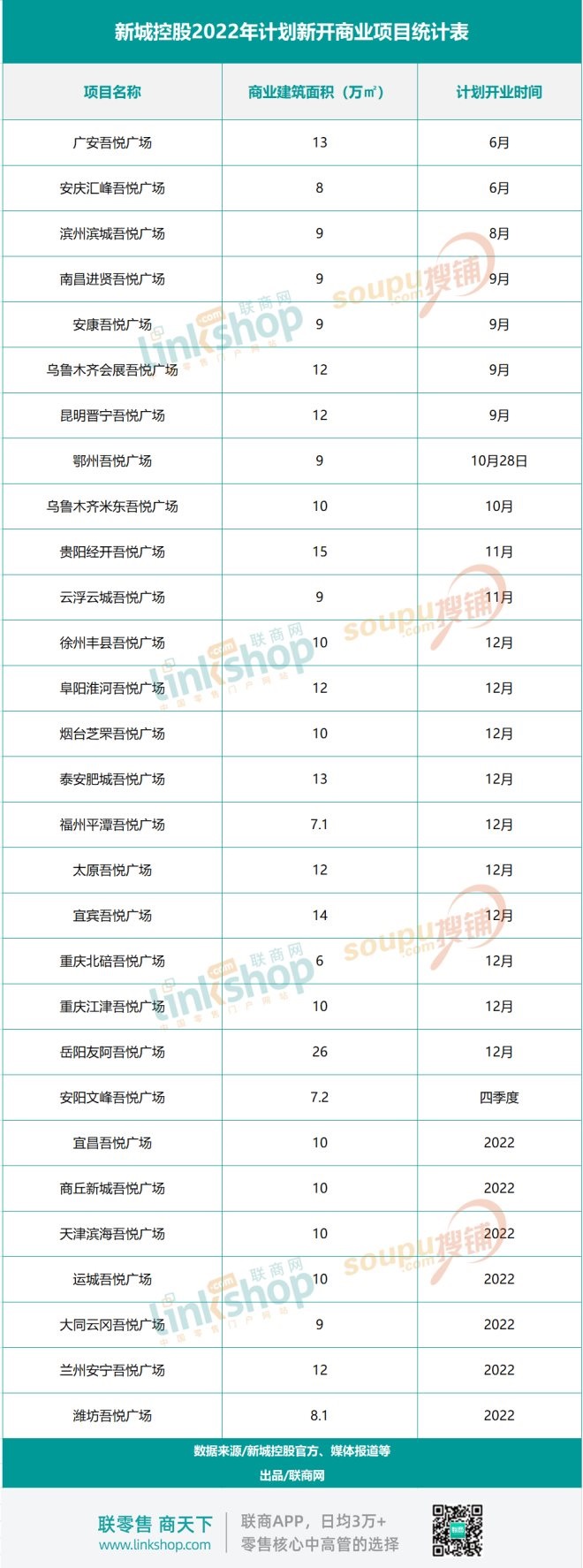 立足于“住宅+商業(yè)”雙輪驅動的發(fā)展戰(zhàn)略,新城控股近年來一直保持著快節(jié)奏發(fā)展,在近幾年的全國新開商業(yè)統(tǒng)計的企業(yè)榜中一起穩(wěn)居前三,其打造的“吾悅廣場”是企業(yè)旗艦商業(yè)產(chǎn)品。