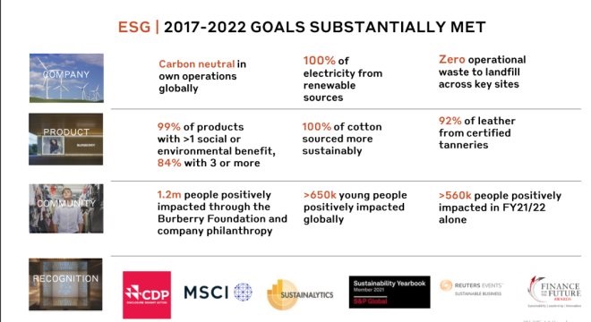 Burberry在第四季度繼續(xù)推進去碳化議程,總體完成了2017-2022企業(yè)責(zé)任目標。
