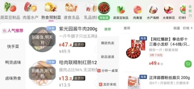 生鮮電商平臺(tái)、大型商超,如盒馬、叮咚、永輝超市等,推出了自有預(yù)制菜品牌;