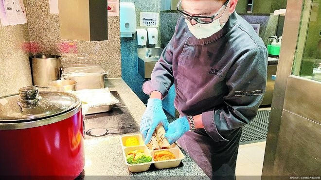 早上6點(diǎn),北京嘉里大酒店行政總廚葉漢圍就已經(jīng)忙碌起來(lái)!懊刻煸缙鹞覀円獮榫频甑拈L(zhǎng)住客人準(zhǔn)備早餐,例如炒面、包子、粥、油條等,客人會(huì)到餐廳從菜單上選擇想吃的美食,打包帶回房間。”說(shuō)完,葉漢圍又低下頭忙著把做好的餐食放進(jìn)飯盒中。