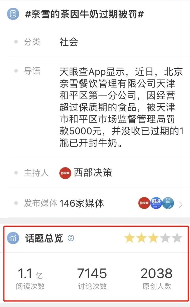 5月16日,奈雪還因使用過(guò)期牛奶被罰,登上了微博熱搜榜。