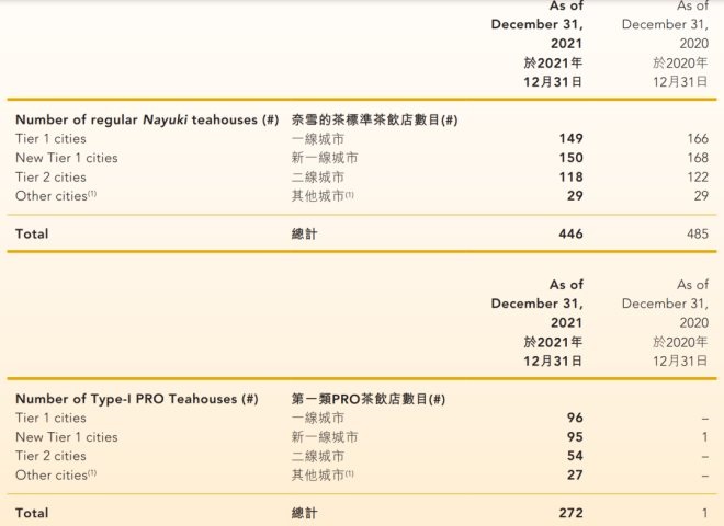 截至2021年12月31日,奈雪已經(jīng)有817家線下店,其中包括446家標(biāo)準(zhǔn)店(2021年12月31日為485家)、272家第一類(lèi)PRO店(2020年12月31日為1家)和99家第二類(lèi)PRO店(2020年12月31日為5家)。