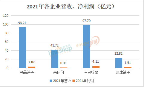 從毛利率來看,三只松鼠雖然在營收上處于第一梯隊(duì),但毛利率遠(yuǎn)低于來伊份和鹽津鋪?zhàn),略高于良品鋪(zhàn)印?021年良品鋪?zhàn)用蕿?6.98%,同比下降0.47%。