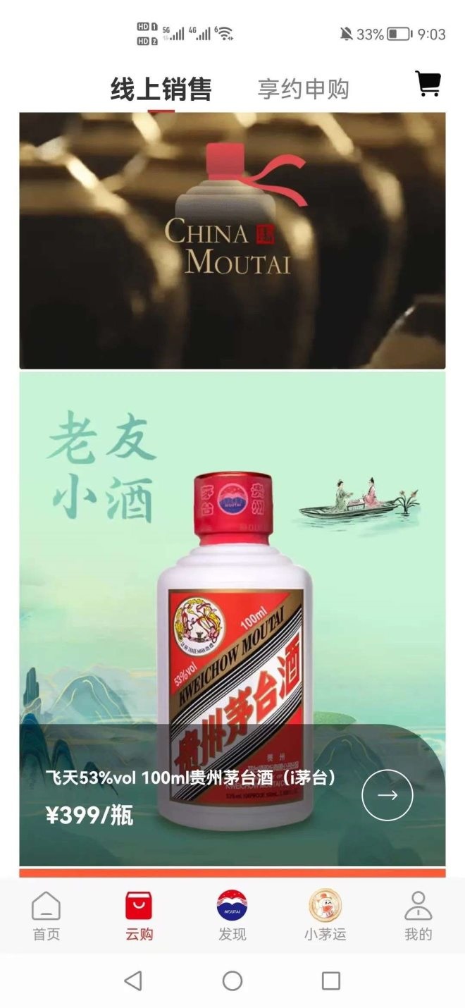 經(jīng)過(guò)49天試運(yùn)行,茅臺(tái)數(shù)字營(yíng)銷平臺(tái)i茅臺(tái)于5月19日正式運(yùn)行,同時(shí)增加上線53度飛天100ml(下稱“飛天小酒”)等5款產(chǎn)品。