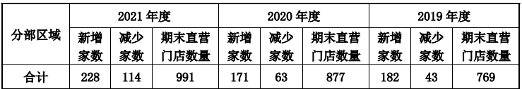 2021年,合計(jì)新開(kāi)297家店,減少114家,相當(dāng)于新開(kāi)183家店。為近三年最快。