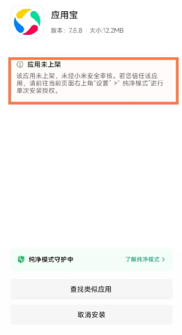 即便在微信里下載了應(yīng)用寶,安裝時也會有“更溫馨”的提示。