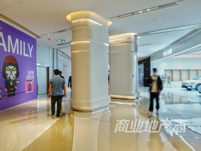 我簡單測了一下,整個(gè)L1層的主動(dòng)線最寬處約13米左右,最窄處約6米左右,且最窄處恰好是上述密集樓柱所在地,因此在小鵬汽車門口的區(qū)域顯得非常逼仄。