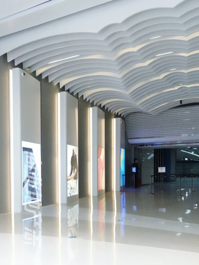 很明顯,與地鐵接駁的B2層顯然是開業(yè)率最高的樓層。這層樓的層高比常規(guī)購物中心的B2層更高,天花與玻璃幕頂?shù)脑O(shè)計(jì)也確實(shí)走心。