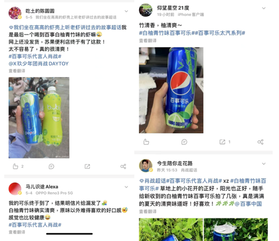 在微博搜索“白柚青竹味 百事可樂”、小紅書搜索“元?dú)馍?竹子味氣泡水",網(wǎng)友都會評價(jià)“清爽”;“原味以外難得的好口感”,“是誰喝了一瓶囤貨一箱”。這也是在消費(fèi)者遭遇新品頻頻踩雷之后,能聽到的少有的褒獎(jiǎng)了。