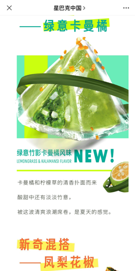 而與此同時(shí),星巴克在官方宣傳竹影檸香星冰粽時(shí),使用的也是“被這波清爽浪潮席卷,是夏天的感覺”。