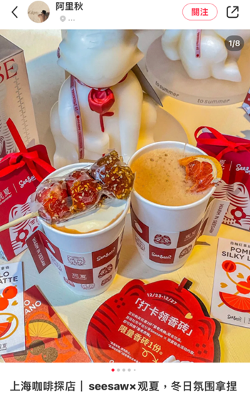 來源:小紅書@阿里秋 seesaw春節(jié)限定白柚紅果絲絨拿鐵