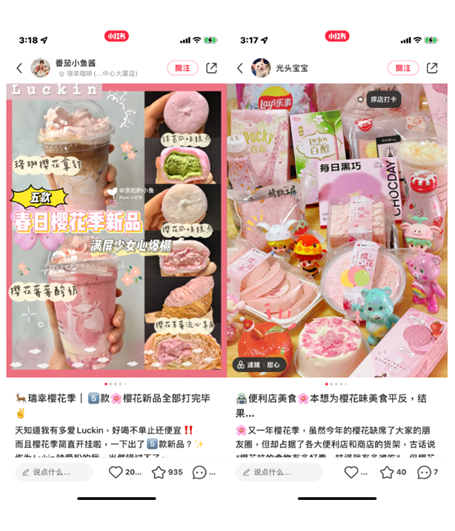 來源:小紅書@番茄小魚醬、@光頭寶寶 櫻花季限定美食