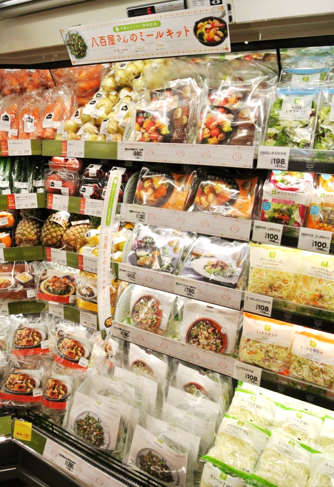 蔬果的面積是普通門店的1.4倍,增加有機(jī)蔬果、店內(nèi)水培蔬菜等新品類,擴(kuò)充店內(nèi)手工加工的沙拉、果切等的品項(xiàng)數(shù),包括100%使用有機(jī)蔬菜的沙拉。增加半成品預(yù)制菜,包括Oisix半成品菜(Meal Kit)、八百屋的半成品菜等。強(qiáng)化高端商品線,如5980日元的蜜瓜,3980日元的黑松露以及各種水果禮盒。