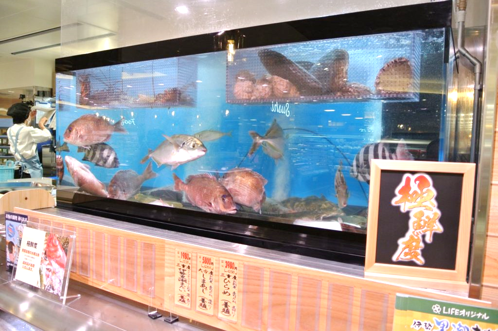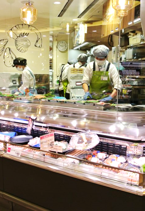 不同于普通超市的水產(chǎn)品結(jié)構(gòu),該店尤其強(qiáng)化了節(jié)假日用于慶祝、聚會(huì)的刺身拼盤,以及多道工序的炙烤壽司等。同時(shí),強(qiáng)化冷凍水產(chǎn)品類,通過LIFE在埼玉縣的物流中心引進(jìn)的零下30度酒精液體速凍機(jī),加工冷凍魚片、冷凍半成品菜等。