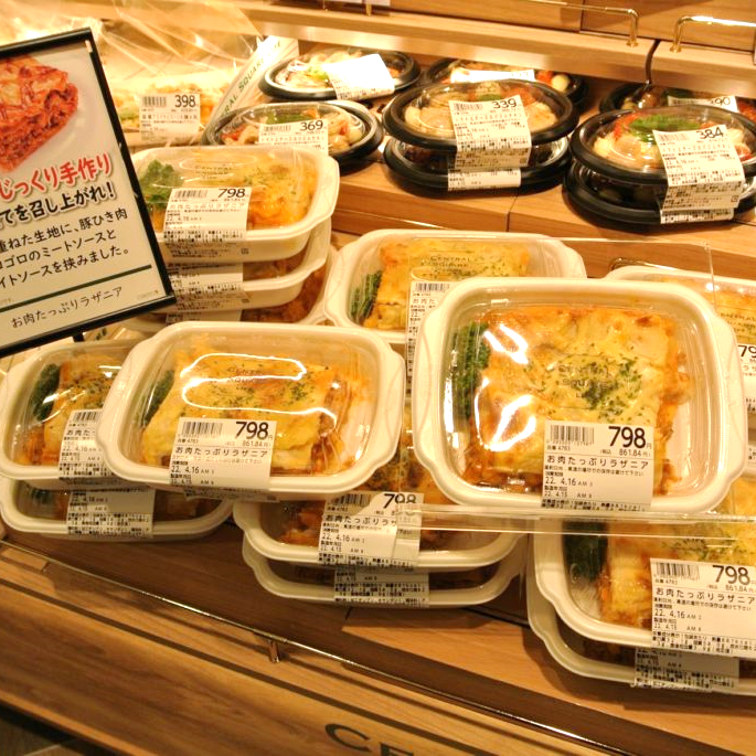 使用巖手縣產(chǎn)純和赤雞現(xiàn)場(chǎng)制作烤雞串,鐵板燒區(qū)銷售御喜燒、炒面、炒飯、玉子燒等,投入烤箱設(shè)備現(xiàn)場(chǎng)烹制烤雞,燒烤區(qū)(Grill)強(qiáng)化使用蔬菜等健康食材加工,并將意式千層面作為重點(diǎn)集客商品。另外,在強(qiáng)化現(xiàn)場(chǎng)加工的同時(shí),積極推進(jìn)旗下熟食工廠的商品開發(fā),如杯裝芝士番茄肉醬土豆泥等。