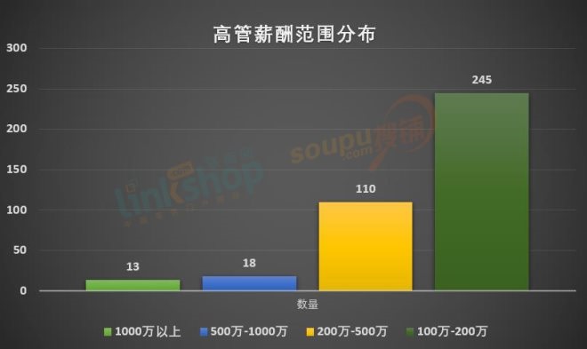 整體來看,76位女性高管中,年薪超300萬(wàn)元的有13位,年薪在200萬(wàn)(含)至300萬(wàn)(不含)的有7位,年薪在100萬(wàn)(含)至200萬(wàn)以內(nèi)(不含)的有56位,占比高達(dá)73.68%。