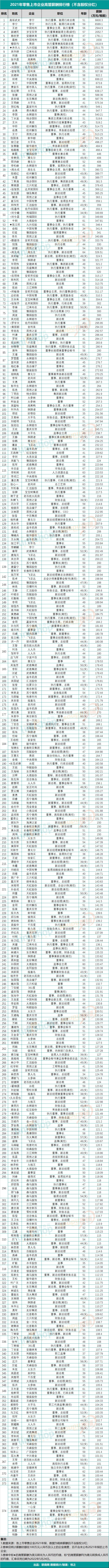 附件:2021年零售上市企業(yè)高管薪酬排行榜