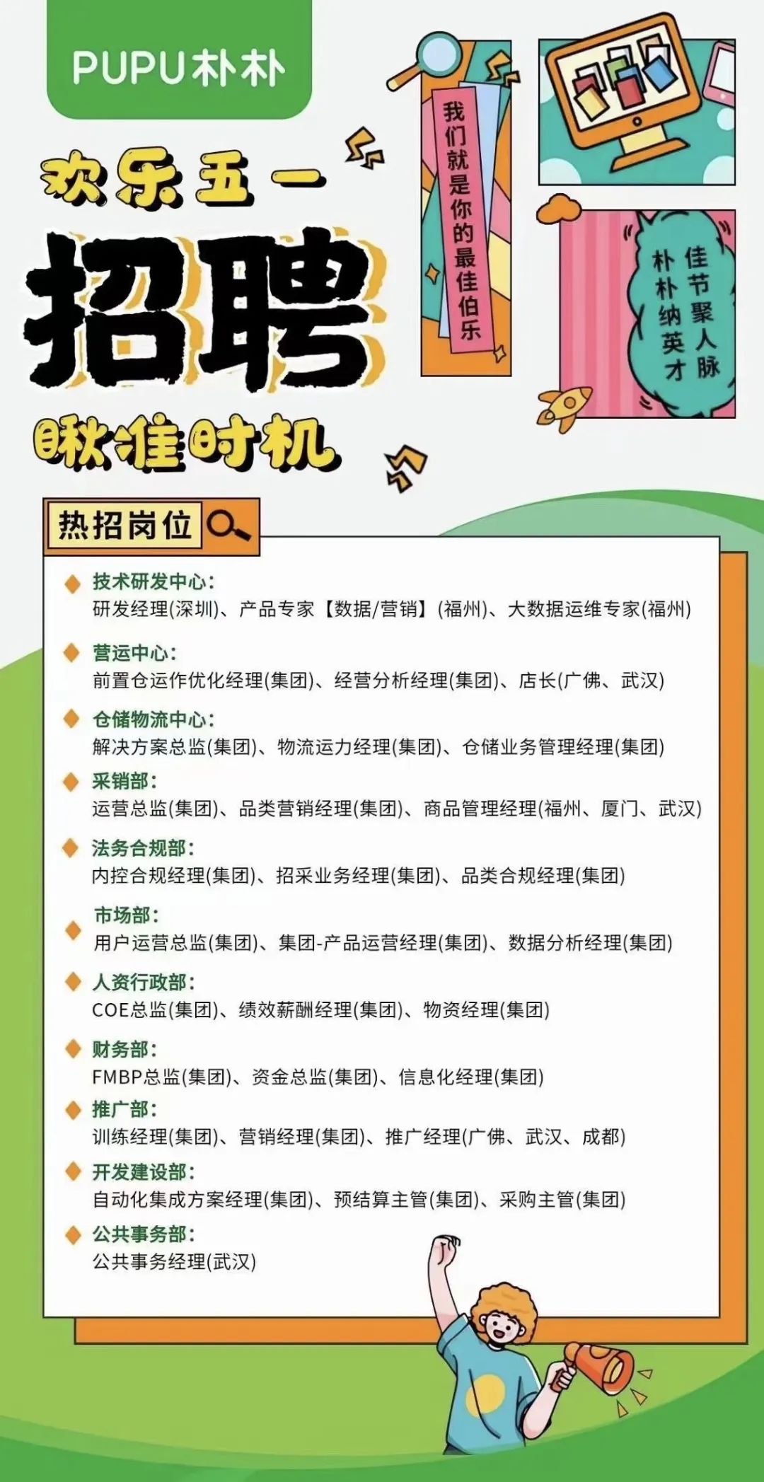 從樸樸招聘官方公眾號(hào)相關(guān)信息可以看出,今年3月以來(lái),樸樸超市在已布局的7座城市:福州、廈門(mén)、廣州、佛山,深圳、武漢、成都,設(shè)置了相應(yīng)招聘需求,覆蓋專家、經(jīng)理、一線專員、實(shí)習(xí)生等多個(gè)崗位。