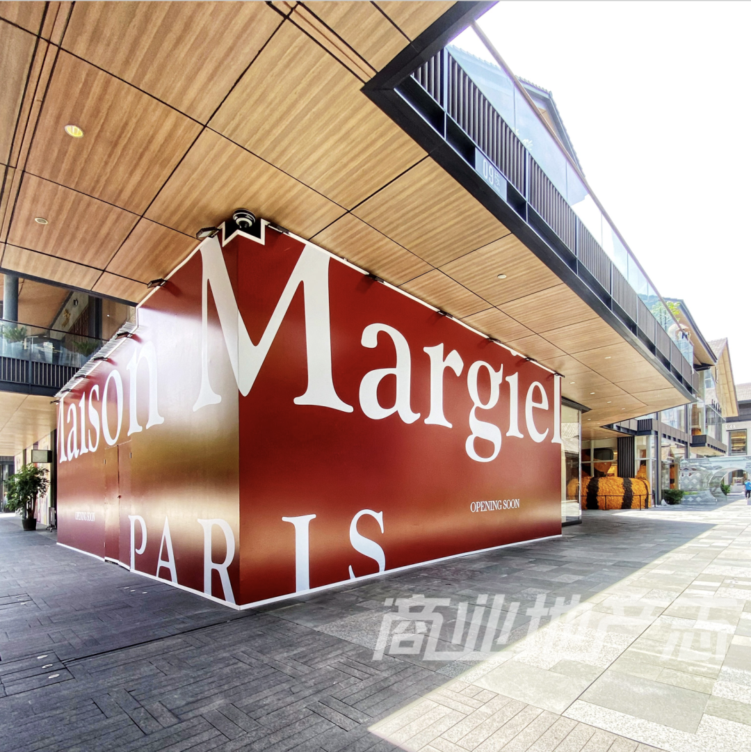 Masion Margiela:這個(gè)品牌目前在太古里有4個(gè)店鋪,分別是1234號(hào)店鋪(原Valextra Summer Store)和1235號(hào)店鋪(原GODIVA),此兩間合并為一家在營(yíng)店(下3圖右一);以及位于CELINE旁邊的1231號(hào)店鋪(下3圖左一),以及原Monosociety物心所在的1236號(hào)店鋪(下3圖中)圍擋