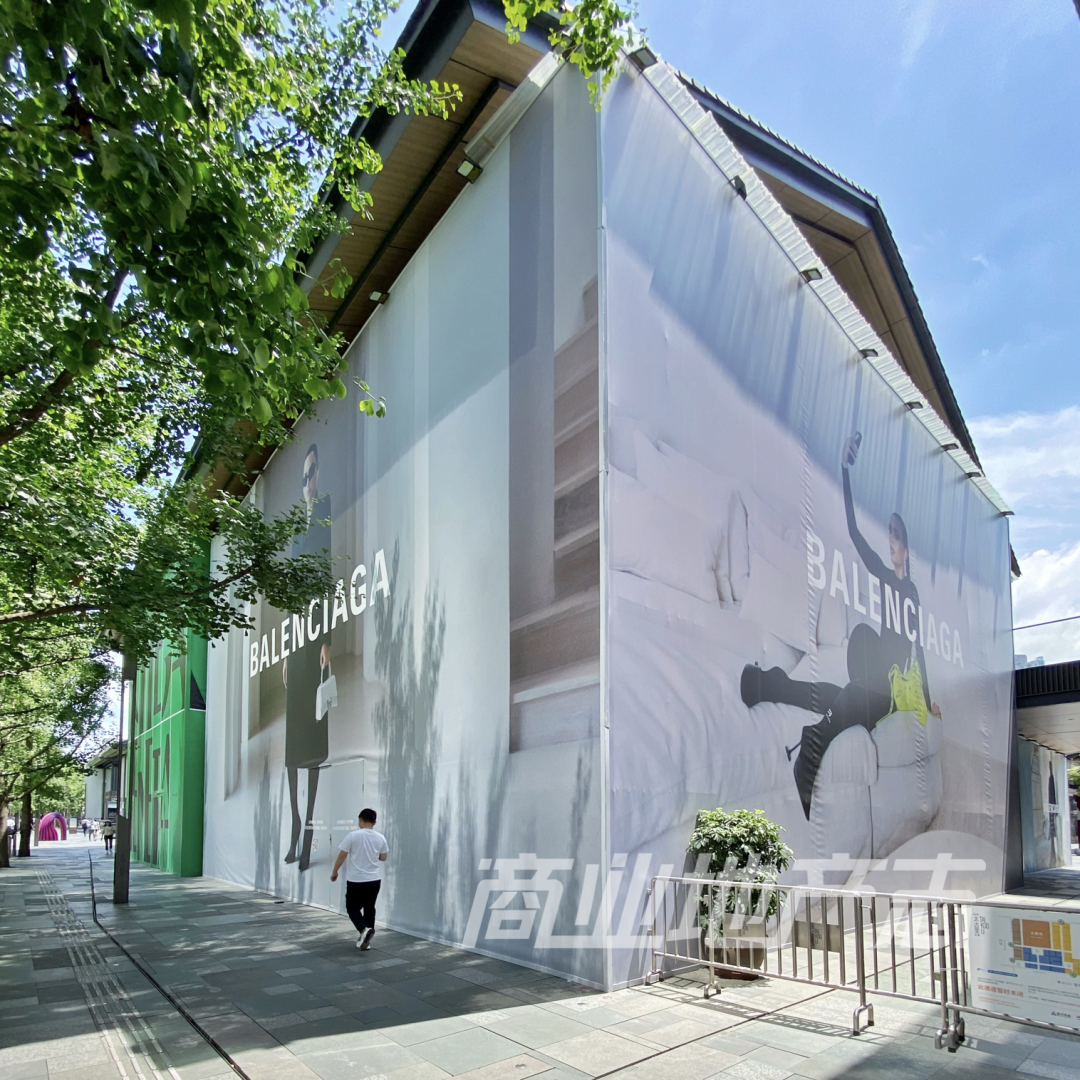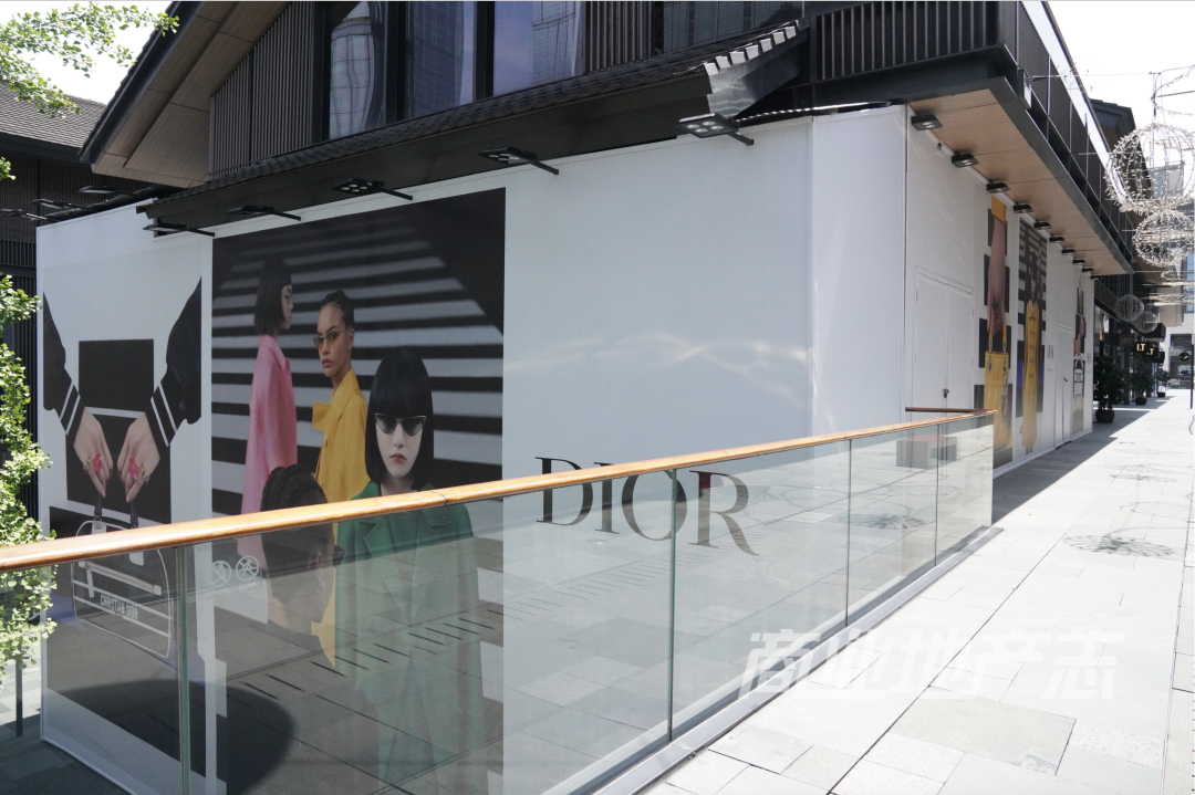 1)2022年1月路易威登之家開業(yè)之后,DIOR、BALENCIAGA、Bottega Veneta紛紛圍擋,項(xiàng)目的重奢氛圍愈發(fā)凸顯;