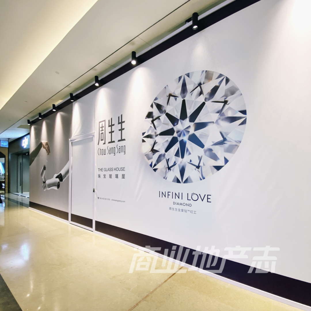 周生生:在B1層M022的MINTYGREEN·周生生的斜對(duì)面M023,GALSS HOUSE·周生生正在打圍