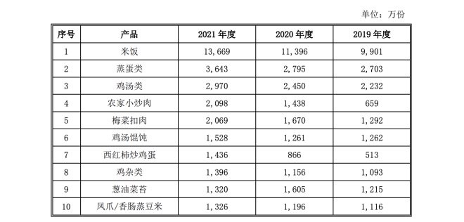 Top10菜品老鄉(xiāng)雞銷量表現(xiàn),圖據(jù)招股書