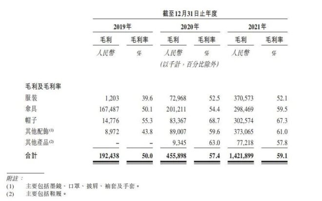 主業(yè)賣衣副業(yè)賣傘,一路拓品的蕉下瞄準了鞋服市場背后的高毛利。據(jù)其招股書資料顯示,蕉下的防曬帽、防曬配飾品類,毛利率都超過了60%。