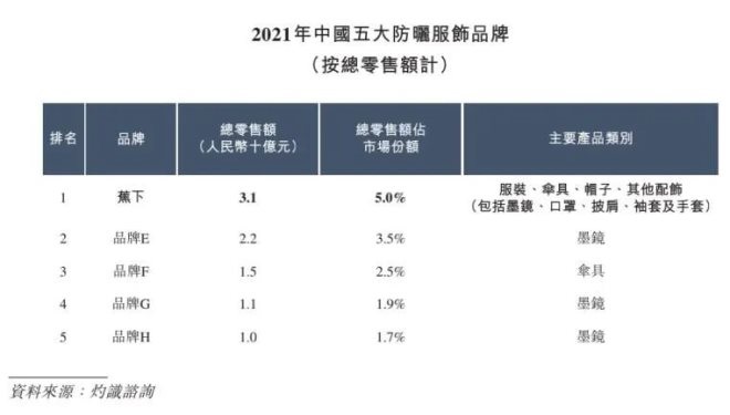 根據(jù)灼識咨詢的報告,按其去年的總零售額計算,蕉下已經(jīng)是當前中國第一大防曬服飾品牌。