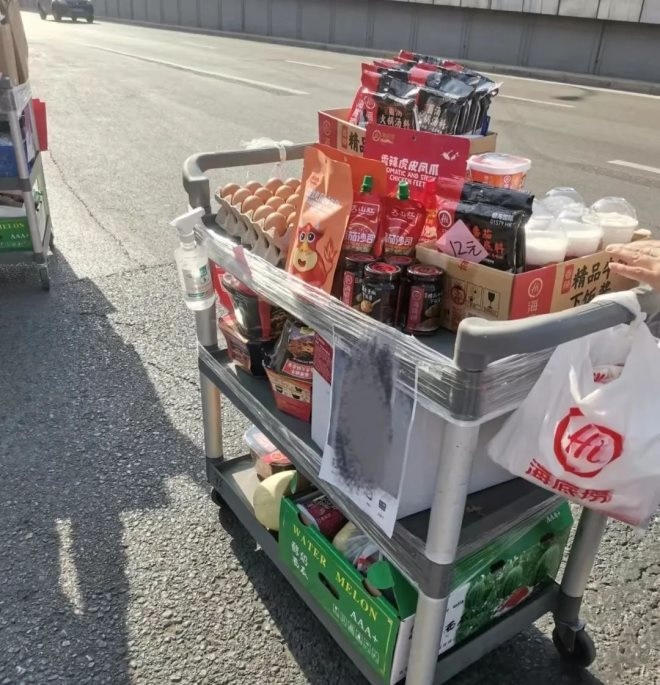 海底撈也做了外擺,但幾乎把自己變成了小超市,自熱火鍋、底料、水果、蔬菜,還有冒菜、小龍蝦等,都有售賣,以滿足線下“到攤”消費者的多樣化需求。