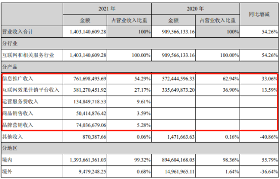 第一是信息推廣收入,向用戶推薦電商或品牌的產品,平臺賺一筆導購傭金或是廣告費。2021年,什么值得買信息推廣收入為76169.85萬元,同比增長為33.06%,占比為54.29%。