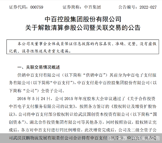 中百集團(tuán)計(jì)劃解散清算供銷中百支付