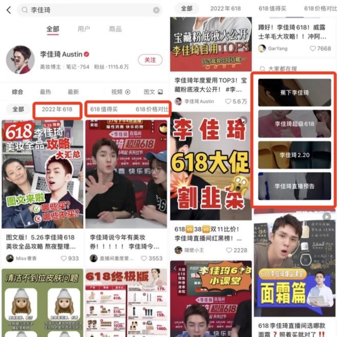 對李佳琦來說,小紅書博主們在618大促前,掀起的一波“李佳琦直播間618價格對比”潮流,更是為李佳琦618助勢。