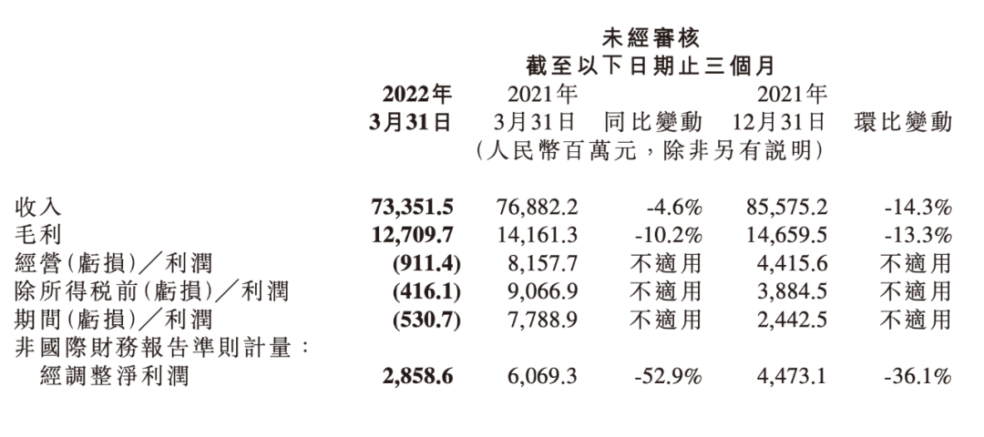 小米2022年第一季度財務情況,圖/小米財報