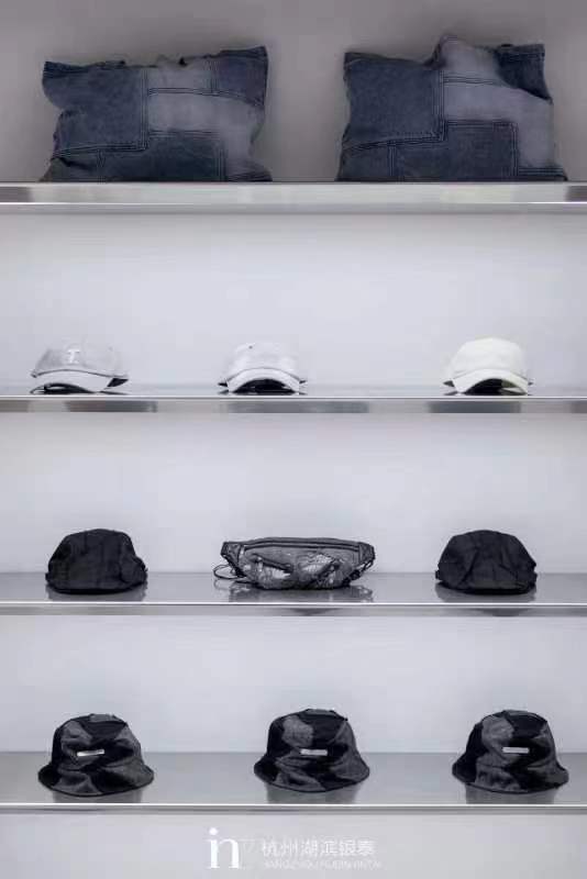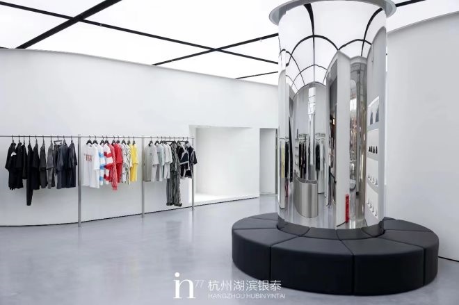 店鋪分為面向西湖,分為上下兩層,第一層主要是品牌服裝、飾品、鞋包、滑板試衣間。二樓是專享私密空間,擺放了超大品牌定制皮沙發(fā)、品牌十字花拜訪設(shè)置。