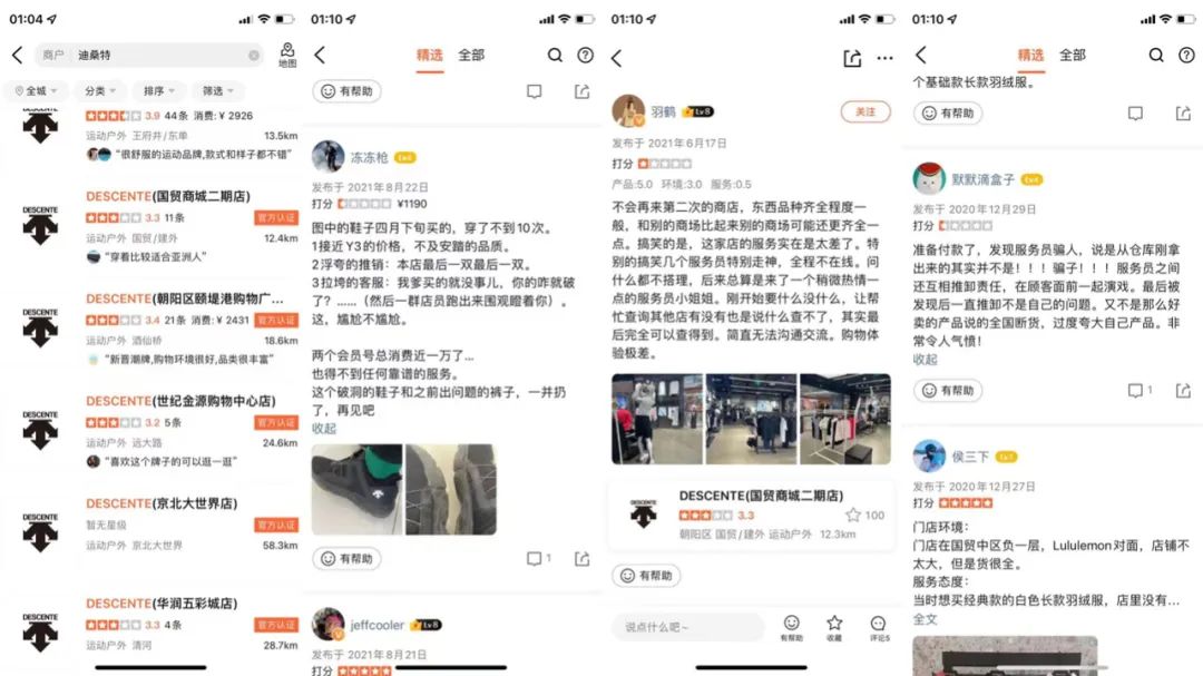 打開大眾點評App,迪桑特的門店評分也普遍很低,槽點主要集中在“款式太少”“缺貨斷貨”“賣那么貴還服務(wù)態(tài)度極差”多個方面。從2021年開始,迪桑特開始在上海、北京等一線城市的核心商圈開出1000平方米左右的大店。