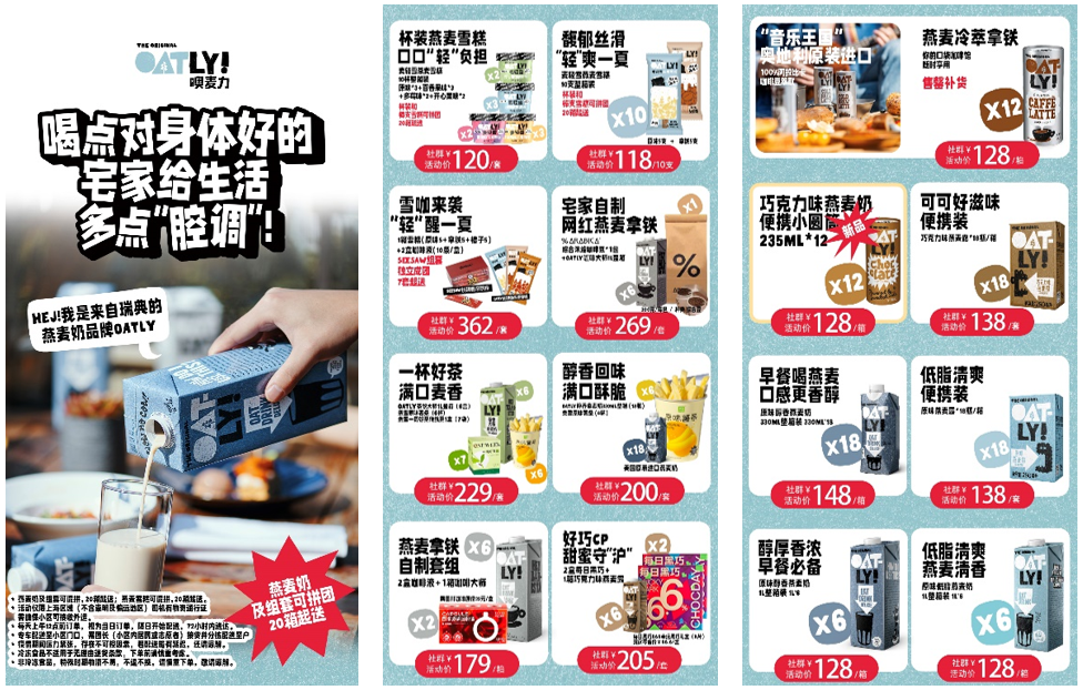 “很多消費(fèi)者在特殊時期消費(fèi),需要的是一個解決方案,而不是單純的一瓶燕麥奶”,OATLY在開展團(tuán)購的第三階段沿用了此前的產(chǎn)品搭配場景,在產(chǎn)品上做組合,聯(lián)手咖啡、餐飲、茶飲、烘焙等商業(yè)伙伴,以及經(jīng)銷商伙伴,為消費(fèi)者提供差異化組套。