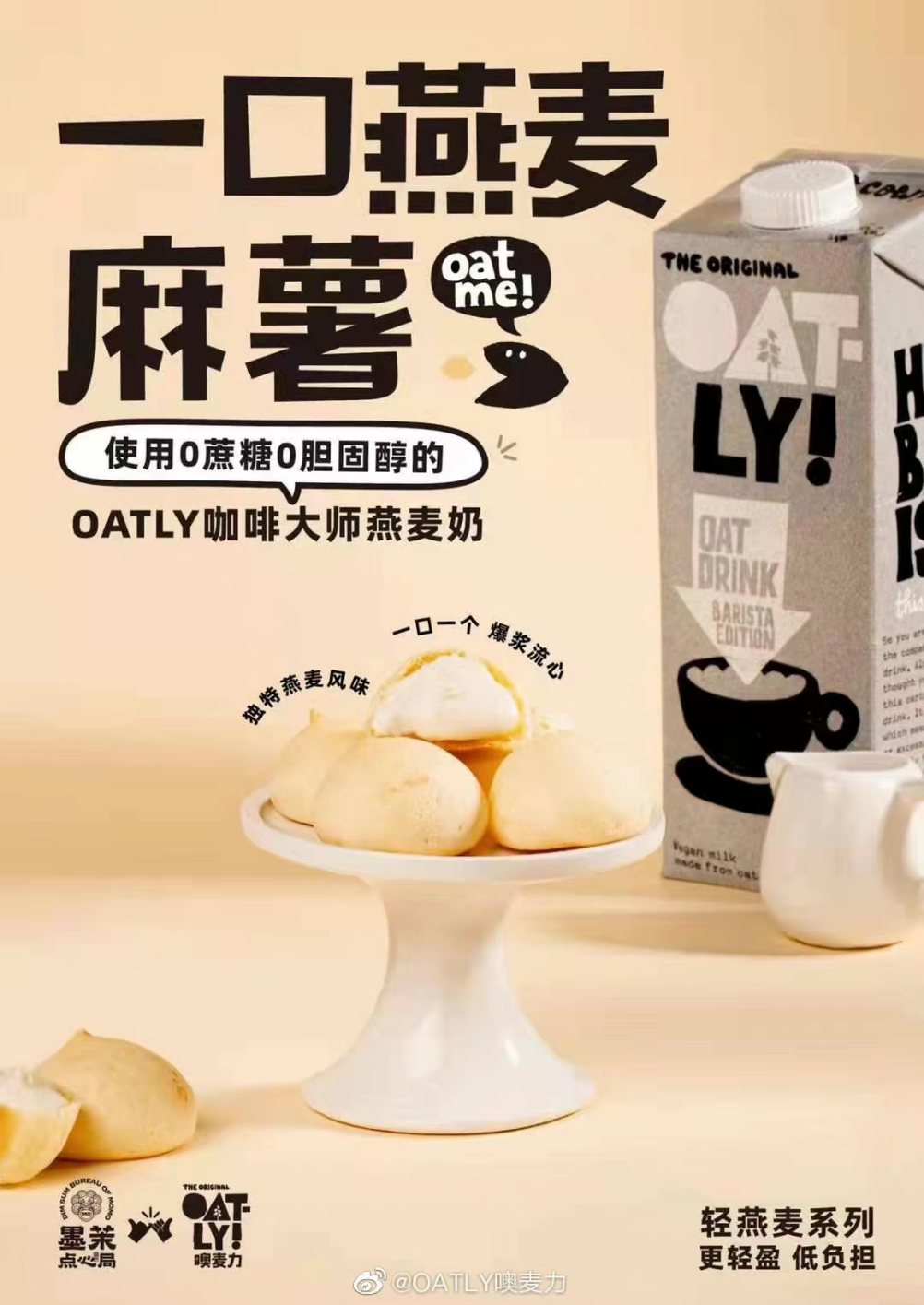 從咖啡到茶飲,再到烘焙,OATLY越來越貼近中國消費(fèi)者的飲食喜好,如近期合作的書亦燒仙草、墨茉點(diǎn)心局,分別是中式茶飲、中式烘焙領(lǐng)域內(nèi)的知名品牌。