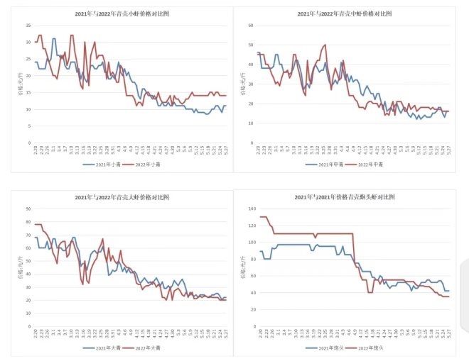 在旺季,小龍蝦價(jià)格下降是順應(yīng)價(jià)格規(guī)律的必然趨勢。今年的提早上市導(dǎo)致前期小龍蝦價(jià)格虛高,價(jià)格低谷期提前,再加上疫情導(dǎo)致的供過于求,4月份小龍蝦的跌速遠(yuǎn)快于去年同期。